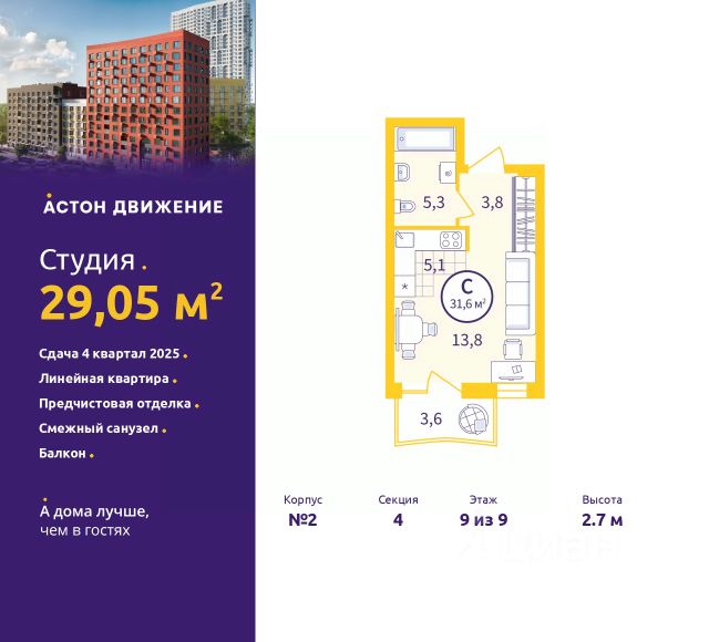 Спешите оформить бронирование, пока действует скидка! Предложение ограничено! Стоимость квартиры указана со скидкой, ваша экономия составит 360,000 RUB. По всем вопросам обращайтесь в офис продаж, наши менеджеры вам все расскажут! 2-комн. квартира от застройщика с предчистовой отделкой в ЖК "Квартал Траектория" на 9 этаже. Общая площадь: 75.4 кв.м. Высота потолков 2.82 м. Дом монолитный, многоподъездный, переменной этажности, от 7 до 25 этажей. Квартира находится в 3-й секции высотой 16 этажей в корпусе 1-1. На этаже 7 квартир. В подъезде 1 пассажирский и 1 грузовой лифт. Начало строительства - 4 квартал 2025 года. Окончание строительства - 4 квартал 2027 года. Оформление сделки по договору долевого участия. Квартира с кухней-гостиной и двумя спальнями в квартале "Траектория". Особенности планировки: второй санузел, гардеробная, вид во двор, разнесённые спальни, предчистовая отделка, балкон. квартиры в нашей базе: МНВ01-Ж3.9.1. Квартал "Траектория" строится в границах улиц Билимбаевской, Расточной, Монтажников и Маневровой Раньше здесь находился оборонный завод 5-ЦАРЗ, основанный в 1945 году. После войны он ремонтировал военную и грузовую технику — от "Виллисов" и "Студебекеров" до советских ЗИС-5 и ГАЗ-67. Сортировка — район с развитой инфраструктурой, обжитыми жилыми кварталами разных эпох и большим количеством парков. До центра Екатеринбурга — 20 минут на машине. Туда же можно отправиться на автобусе: ближайшая остановка общественного транспорта — в 4 минутах от "Траектории". Рядом с "Траекторией" расположены магазины, торговый центр, детские сады, школы, поликлиники и полезные сервисы, а также другой проект Брусники — квартал "Депо". Если хочется развлечений, можно отправиться в ТРЦ "Карнавал" и парк с аттракционами "Таганская слобода" — дорога туда займёт не более 10 минут на машине. Квартал "Траектория" — первый этап комплексного развития территории, которую раньше занимали производственные здания. На месте бывших цехов Брусника создаст дружелюбную среду и комфортное пешеходное пространство для всего района. Для озеленения квартала мы подобрали больше 60 видов растений: ольху, липу, клён, иву, грушу, вишню, сирень, барбарис, гортензию, смородину, ирис, декоративные травы. Они цветут в разное время года и постоянно меняют настроение двора. В "Траектории" мы предусмотрели несколько общественных пространств, открытых для всех горожан: встречающий сквер, лесопарк у храма и событийный сквер между домами. Когда захочется тишины и уединения, можно устроить прогулку во внутренних дворах: в них нет машин и посторонних, зато много зелени, света и мест для отдыха. Каждый двор в квартале "Траектория" — продолжение квартиры, только под открытым небом. Здесь можно прогуляться босиком по траве, устроить утреннюю йогу, почитать книгу в гамаке или отправить детей поиграть, не переживая за их безопасность. Мы закроем дворы от машин, чтобы создать безопасную среду для отдыха. Применим натуральные материалы в отделке малых архитект