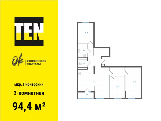 Квартира в ЖК "ОК: Премиум" в Пионерском микрорайоне от застройщика TEN девелопмент! Ключи во 2 квартале 2027 года. ЖК "ОК: Премиум" - это продолжение квартала, украсившего локацию Основинского парка, включающего 5 домов высотой от 14 до 31 этажей. Спокойный архитектурный облик, классические линии и формы, гармоничное сочетание цветовых решений все подчеркивает респектабельный характер второй очереди жилого комплекса "Основинские кварталы". Вдохновение природой Здесь не просто ландшафтное озеленение, а целые коллекции цветов и деревьев - различные сорта яблонь, сирени, гортензий и других растений - настоящий питомник в собственном дворе! Двор закрыт от машин и посторонних, при этом учтены интересы всех жителей как маленьких, так и взрослых. Разнообразные динамичные площадки для игр, ворк-аут зоны, амфитеатр, площадка для йоги не только созерцать, но и наслаждаться активным отдыхом! Контроль доступа, видеонаблюдение и круглосуточная охрана обеспечат безопасность для себя и близких. Спокойствие и респектабельность Входные группы прозрачные и расположены на уровне тротуара, чтобы было удобно завозить коляску или велосипед. Дизайн холлов выполнен в классическом выдержанном стиле. Для удобства жителей здесь есть мягкие зоны, колясочная и лапомойка, для автолюбителей - подземный паркинг. Свобода без ограничений Разнообразие планировочных решений позволит воплотить любые идеи и желания: насладиться видами с собственной террасы, обустроить второй уровень с потолком под 3,5 м, реализовать самые смелые дизайнерские решения. Отделка под чистовую. В санузле — монолитный потолок, на полу — гидроизоляция и стяжка, стены оштукатурены. В одном санузле установлены унитаз и раковина. В остальных помещениях потолок — монолит, на полу — стяжка, стены оштукатурены. Выгодные условия оплаты: - акционные предложения - ипотека от ведущих банков - рассрочка от застройщика - трейд-ин Звоните или оставляйте заявку, чтобы узнать больше и забронировать квартиру!