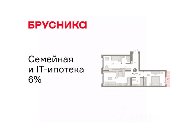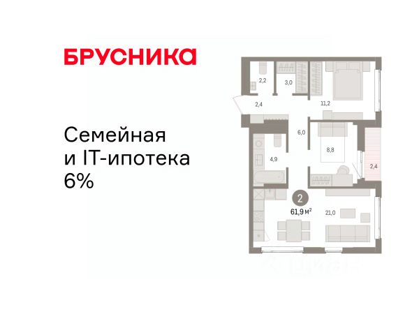 Торопитесь оформить бронирование по этой цене! Предложение ограничено! Стоимость квартиры указана со скидкой, ваша экономия составит 360,000 RUB. По всем вопросам звоните в офис продаж, наши менеджеры вам все расскажут! 2-комн. квартира с предчистовой отделкой в ЖК "Квартал Траектория" на 4 этаже. Общая площадь: 61.9 кв.м., жилая: 20 кв.м., площадь просторной кухни-столовой: 21 кв.м. Квартира угловая, очень светлая, естественная вентиляция при открытии окон. В квартире одна лоджия, один совмещенный и один раздельный санузел. Высота потолков 2.82 м. Дом монолитный, многоподъездный, переменной этажности, от 7 до 25 этажей. Квартира находится в 3-й секции высотой 16 этажей в корпусе 1-1. На этаже 7 квартир. В подъезде 1 пассажирский и 1 грузовой лифт. Начало строительства - 4 квартал 2025 года. Окончание строительства - 4 квартал 2027 года. Оформление сделки по договору долевого участия. Квартира с кухней-гостиной и двумя спальнями в квартале "Траектория". Особенности планировки: второй санузел, гардеробная, лоджия, предчистовая отделка, разнесённые спальни, стартовая цена. квартиры в нашей базе: МНВ01-Ж3.4.4. Квартал "Траектория" строится в границах улиц Билимбаевской, Расточной, Монтажников и Маневровой Раньше здесь находился оборонный завод 5-ЦАРЗ, основанный в 1945 году. После войны он ремонтировал военную и грузовую технику — от "Виллисов" и "Студебекеров" до советских ЗИС-5 и ГАЗ-67. Сортировка — район с развитой инфраструктурой, обжитыми жилыми кварталами разных эпох и большим количеством парков. До центра Екатеринбурга — 20 минут на машине. Туда же можно отправиться на автобусе: ближайшая остановка общественного транспорта — в 4 минутах от "Траектории". Рядом с "Траекторией" расположены магазины, торговый центр, детские сады, школы, поликлиники и полезные сервисы, а также другой проект Брусники — квартал "Депо". Если хочется развлечений, можно отправиться в ТРЦ "Карнавал" и парк с аттракционами "Таганская слобода" — дорога туда займёт не более 10 минут на машине. Квартал "Траектория" — первый этап комплексного развития территории, которую раньше занимали производственные здания. На месте бывших цехов Брусника создаст дружелюбную среду и комфортное пешеходное пространство для всего района. Для озеленения квартала мы подобрали больше 60 видов растений: ольху, липу, клён, иву, грушу, вишню, сирень, барбарис, гортензию, смородину, ирис, декоративные травы. Они цветут в разное время года и постоянно меняют настроение двора. В "Траектории" мы предусмотрели несколько общественных пространств, открытых для всех горожан: встречающий сквер, лесопарк у храма и событийный сквер между домами. Когда захочется тишины и уединения, можно устроить прогулку во внутренних дворах: в них нет машин и посторонних, зато много зелени, света и мест для отдыха. Каждый двор в квартале "Траектория" — продолжение квартиры, только под открытым небом. Здесь можно прогуляться босиком по траве, устроить утреннюю йогу, почитать книгу в гамаке или отпр