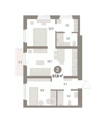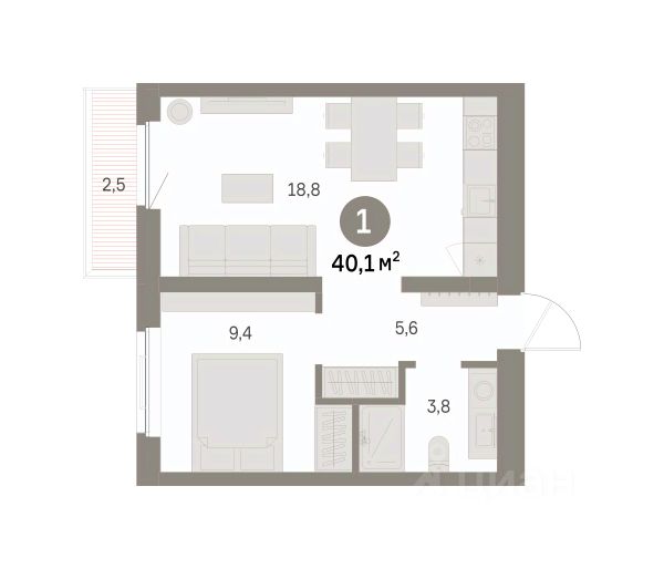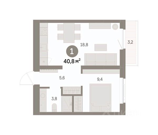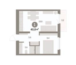 Общая площадь: 36.9 кв.м.