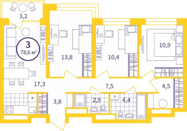 Продаётся 3-комн. квартира площадью 74,8 кв.м на 3 этаже 29 этажного дома (Корпус 6, Секция 1) проекта ПИК Утёс. Светлый просторный подъезд на уровне земли, функциональная планировка, большие окна, предчистовая отделка. Жилой квартал "Утёс" находится в Екатеринбурге, в самом центре микрорайона Уктус, в 25 минутах на автомобиле от центра города. Рядом река Исеть, на которую открывается панорамный вид из окон квартала. Для прогулок возле реки у жителей проекта будет собственная благоустроенная набережная. В микрорайон входит десять жилых корпусов, собственный детский сад для 236 малышей и многоуровневые надземные паркинги на 848 мест. На первых этажах домов откроются кафе, магазины и другие сервисы. Застройка разной высоты даёт ощущение свободного пространства и пропускает много естественного света в квартиры и во дворы. Во дворах появятся уютные парки с детскими площадками и местами для отдыха - здесь можно будет отдохнуть после работы, поболтать с соседями, почитать в тени или позаниматься йогой. Спортивные площадки мы разместим так, чтобы шум от них не мешал жителям. В окружающем районе есть всё для комфортной жизни: школы, детские сады, поликлиники, продуктовые магазины. За 7 минут на автомобиле можно доехать до крупных торговых центров - например, до ТРЦ "Глобус". Рядом есть парки - Парк Лесоводов России, "Уктусские горы" и Карасье-Озёрский лесной парк. Артикул 966946 (Застройщик ООО "СЗ "АРТСТРОЙ")
