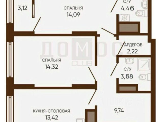 Квартира продается с мебелью, система для хранения одежды в прихожей, укомплектованная зона готовки с газовой плитой, диван, шкаф, тумбы.