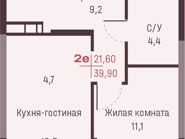 Общая площадь - 59,29 м2
