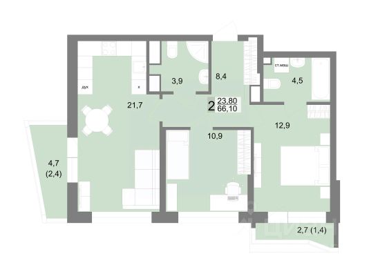 Продаётся 1-комнатная квартира в строящемся доме (Дом 1), срок сдачи: IV-кв. 2027, общей площадью 29.2 кв.м., на 2 этаже. Новый жилой комплекс "Контрасты" от застройщика "компания Астра" расположен по адресу: г. Екатеринбург, улица Викулова.