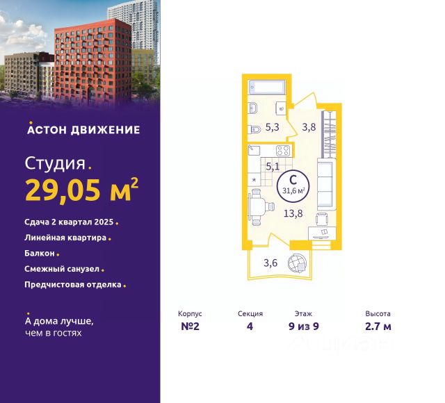 Студия в квартале "Депо". Особенности планировки: предчистовая отделка, балкон. квартиры в нашей базе: ДЕП07-Ж6.6.6. Квартал "Депо" расположен в активно развивающейся части Сортировки, на месте, где раньше был завод "Электротранс". Преимущества Сортировки — развитая инфраструктура. В пешей доступности — супермаркеты, остановки городского транспорта, поликлиники, детские сады, школы, гимназии, торговые центры, автоцентры, рынок с большим и доступным по стоимости выбором товаров, парк РЖД и парк с аттракционами Таганская Слобода. Квартал "Депо" расположен в границах улиц Пехотинцев — Таватуйская — Сортировочная — Новая (проектируется). Благоустройство квартала основано на трёх принципах. Первый — особое внимание к воде. Архитекторы Брусники создадут внутри застройки систему дождевых садов, которые будут фильтровать сток (в том числе с крыш зданий) и снижать нагрузку на ливневую канализацию . Второй принцип — разнообразие. Мы высадим на улицах ивы, липы, яблони разных сортов, спиреи, лапчатку и дерен, а во дворах — березы, липы, черёмухи, пузыреплодник, кизильник и манчжурский орех, который в Екатеринбурге почти не представлен. Третий принцип — зонирование. Центральный бульвар мы насытим площадками для игр детей и спокойного отдыха взрослых, на площади перед детским садом расположим окруженные деревьями плэйхабы, летние веранды кафе, открытое пространство с запоминающимся артом. #2SC7O2