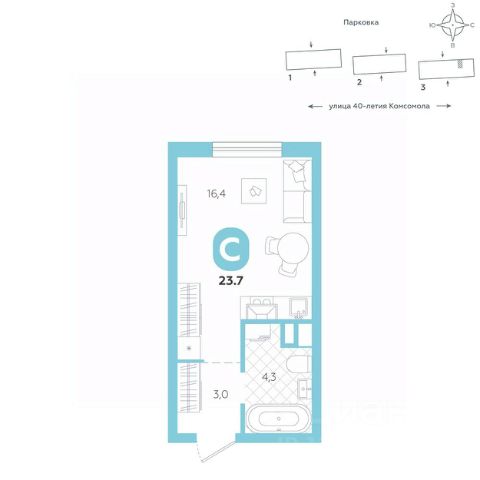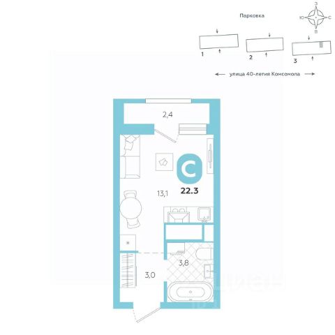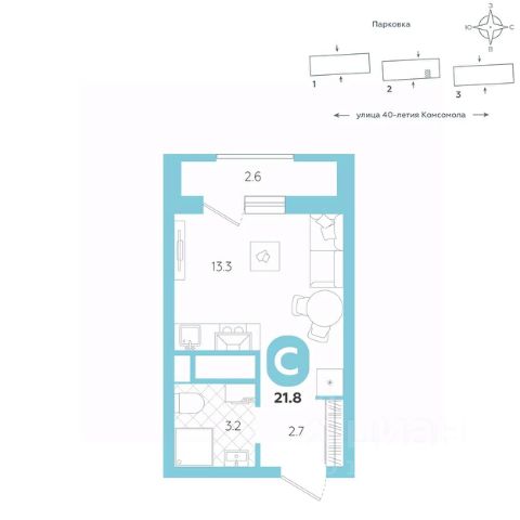 Эргономичная квартира-студия с лоджией и перспективой роста в цене — отличный выбор для тех, кто делает первые шаги к самостоятельной жизни. Общая площадь квартиры 21,8 кв.м., и ее умная планировка позволяет создать атмосферу, полностью отражающую ваши стиль и предпочтения. Квартира располагается в ЖК "Комсомольский" — жилом комплексе комфорт-класса. Здесь вы будете наслаждаться беззаботной жизнью, ведь ваш дом — воплощение практичности, безопасности и надежности. Для удобства предусмотрены колясочные на первых этажах домов, где можно оставить велосипеды и коляски в тепле. За безопасность отвечают система электронных ключей и видеонаблюдение. Еще здесь собственная котельная, поэтому в доме всегда будут горячая вода и оплата счетов только за фактически потребленное тепло. ПРЕИМУЩЕСТВА ЖК Красивые и функциональные парадные с мягкой и стильной зоной для отдыха, книгообменником, встроенными почтовыми ящиками и нишами для сумок Колясочные с доступом по ключу IP-домофоны Тихие лифты с плавным ходом О ПРОЕКТЕ ЖК "Комсомольский" строится в спокойном Кировском районе Екатеринбурга в границах улиц Сыромолотова — Рассветная — 40-лет Комсомола. Комплекс состоит из трех домов переменной этажности, которые выделяются динамичными линиями, выразительными фасадами и стильными лоджиями. ЛОКАЦИЯ Всё, что необходимо для повседневной жизни, находится недалеко от дома: школы, детские сады, продуктовые магазины, фитнес-клубы. Дорога до центра города на машине займет всего 10 минут — достаточно повернуть с улицы 40-летия Комсомола на улицу Владимира Высоцкого. Рядом с этим перекрестком начинается "Тропа здоровья" — большой терренкур вдоль "Каменных палаток". 10 мин до центра 3-4 минуты до школы No 82, гимназии No 176 4-5 минут до детских садов No 208, No 583, 266 20 мин до Свердловского областного медицинского колледжа и Центральной городской больницы No 7 В рамках стратегического развития района на первых этажах домов появятся коммерческие помещения, в которых откроются магазины и кафе. Следует учесть, что к 2030 году в Кировском районе планируется формирование регионального рекреационно-оздоровительного кластера, строительство ветки метро, расширение и модернизация старых промышленных зон социальной и бизнес-инфраструктуры, что приведет к созданию комфортной среды для жизни. Кроме того, в стратегию входит развитие Шарташского лесного парка как центра регионального и международного туризма. СПОСОБЫ ПОКУПКИ Ипотека: подберем выгодные условия в нескольких банках, чтобы вы могли выбрать лучшее Материнский капитал: можно использовать в качестве первоначального взноса Рассрочка: платите частями без % Сертификаты: позволяют оплатить часть стоимости квартиры О КОМПАНИИ "Паритет Девелопмент" — это современный и ответственный подход к реализации проектов в сфере жилищного строительства. Компания формирует среду, способную создать новое качество жизни для клиентов, поэтому каждый проект имеет свою философию
