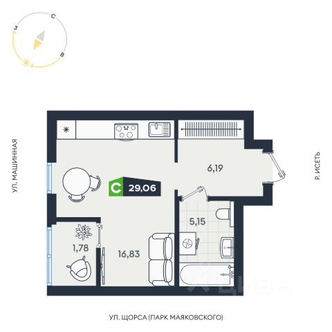 Продается однокомнатная квартира площадью 23 кв. м в одном из самых удобных районов Екатеринбурга, 2 остановки наземным транспортом до Администрации города.