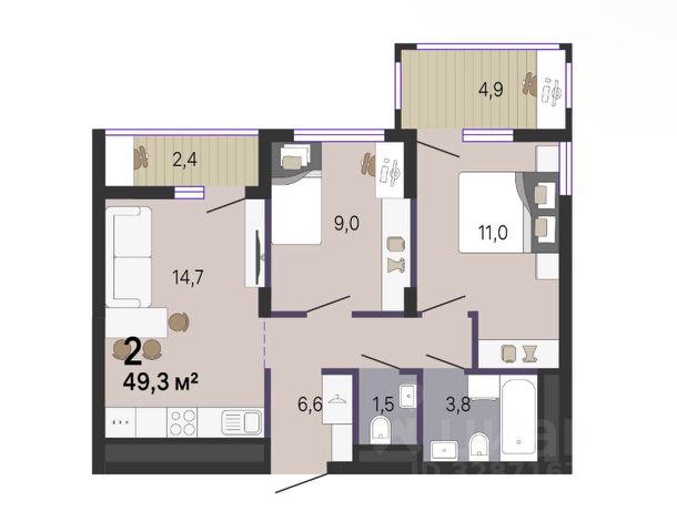 Просторная кухня-гостиная + две изолированные комнаты. Планировка — огонь, на фото можете увидеть несколько вариантов, уже согласовывали с дизайнером (покупателю отдадим макеты)