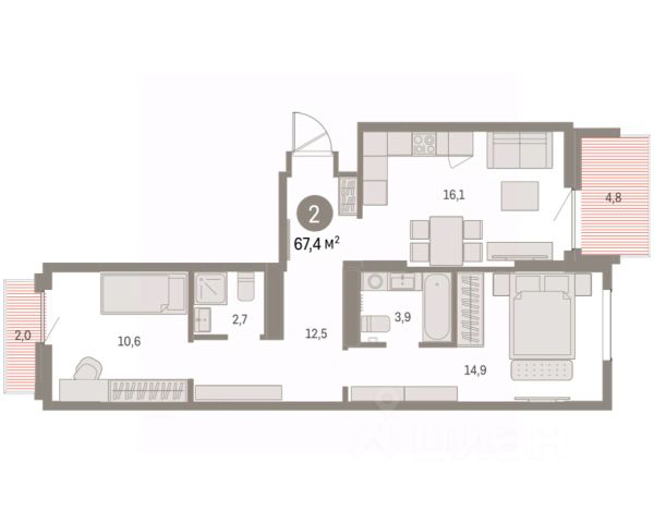 Торопитесь оформить бронирование на этих условиях! Срок акции ограничен! Стоимость квартиры указана со скидкой, ваша экономия составит 2,120,000 RUB. Информация по телефону, мы вам все подробно расскажем! Продаётся с паркингом и кладовой. Квартира с кухней-гостиной и тремя спальнями в Бруснике в Академическом. Особенности планировки: второй санузел, вид во двор, разнесённые спальни, предчистовая отделка, мастер-спальня, постирочная, балкон. квартиры в нашей базе: АКД04-Ж8.9.2. Квартал "Брусника в Академическом" расположен в границах улиц Ландау — Новая. Сегодня Академический — молодой, стремительно развивающийся район, обеспеченный всей необходимой инфраструктурой. С центром его связывают две магистральные улицы — Вильгельма де Геннина и Амундсена. Последняя в перспективе соединится с ЕКАДом, что позволит жителям быстрее выезжать из города. Согласно утвержденному проекту планировки территории в пешеходной доступности от квартала Брусники появятся две школы, рассчитанные на 1700 мест, и шесть детских садов. Рядом со строящимися домами расположены две крупные зелёные зоны — Юго-Западный лесопарк и Преображенский парк. В школах раиона совместно с учеными УрО РАН будет реализован проект "Малая академия наук", предпогагающий регулярные экскурсии в отраслевые институты и лаборатории, участие в научных конференциях и мастер-классах. Также в Академическом уже построены, теннисная академия и дворец дзюдо, крупные ТРЦ "Краснолесье" и ТРЦ "Академический", гипермаркет "Лента", в планах — организация ИT-кластера и новых филиалов НИИ. Камерные дворы квартала закрыты от машин. По нашим стандартам 70% их территории покрывает зелень. Деревья, кустарники и травы подобраны таким образом, чтобы в каждый сезон двор оставался красивым и имел свой цвет. Каждый двор разделён на зоны. В одной расположены детские площадки, в другой — места для спорта и тихого отдыха взрослых. Особенность ландшафта дворов — дождевые сады, снижающие нагрузку на ливневую канализацию. Они впитывают сток с крыш и тротуаров, фильтруют его в специально подобранном субстрате и отправляют в пруд. #z3EAZA