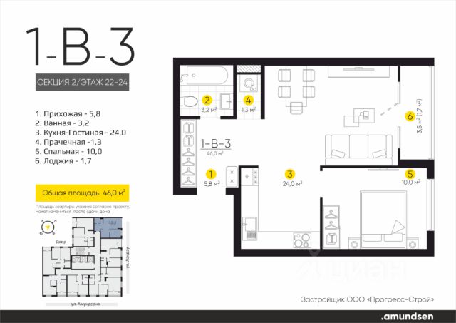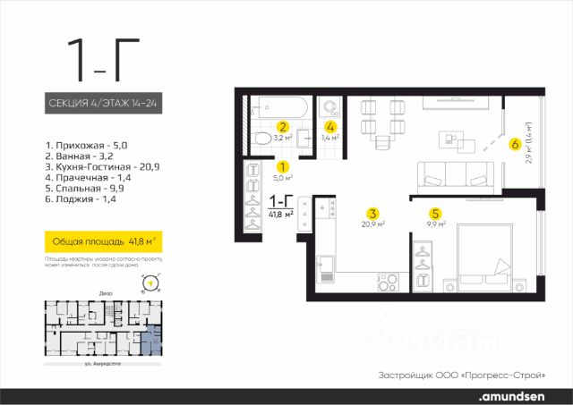 "РАЗУМ в Академическом" — это жилой комплекс из 7 домов переменной этажности от федерального девелопера "РАЗУМ" с 12-летним опытом создания жилых проектов. Дома от 12 до 24 этажей расположены в границах ул. Амундсена. В пешей доступности: - 6 школ; - 10 детских садов; - магазины; - поликлиники; - фитнес-залы. Рядом удобный выезд на ЕКАД. Главная особенность проекта — угловое остекление, которое составляет 22% всей площади. Окна в квартирах установлены в 60 см от пола. Увеличенная площадь остекления помогает снизить затраты на энергоресурсы и создаёт уют в квартире. Сердце жилого комплекса — приватный двор-парк с игровыми комплексами, тренажерами, площадками. "городские грядки" — новое решение благоустройства, где выращиваются ароматные травы или цветы. За пределами комплекса есть прогулочная зона с эко-тропой с вдохновляющими надписями. Прогулки по эко-тропе — это променады наедине с природой. "РАЗУМ в Академическом" — это: - территория без машин; - безбарьерная среда; - единый экостиль в оформлении дворового пространства; - 11 тематических зоны в двор-парке; - многоуровневое освещение и подсветка фасадов; - видеонаблюдение; - гостевой паркинг; - эстетичные подъездные холлы со сквозными подъездами и комфортной зоной ожидания; - Разделенные колясочные и велосипедные зоны; - Велосипедные на 1 этаже; - Кладовые помещения на каждом этаже и на -1 этаже. В проекте 25 планировочных решений: от уютных студий от 21,51 м² до квартир с тремя спальнями и кухней-гостиной до 66,58 м² с функциональным разделением на гостевую и приватные зоны.