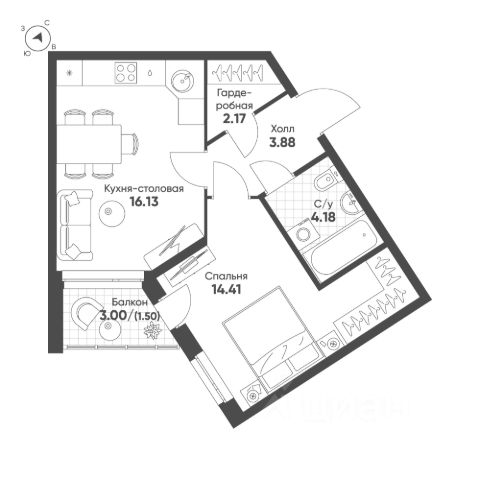 Продаётся 1-комнатная квартира в строящемся доме (Дом 6.2), срок сдачи: I-кв. 2026, общей площадью 42.27 кв.м., на 16 этаже. Новый жилой комплекс "Жилой район "Солнечный"" от застройщика "ГК Эталон" расположен по адресу: г. Екатеринбург, Золотистый бульвар.