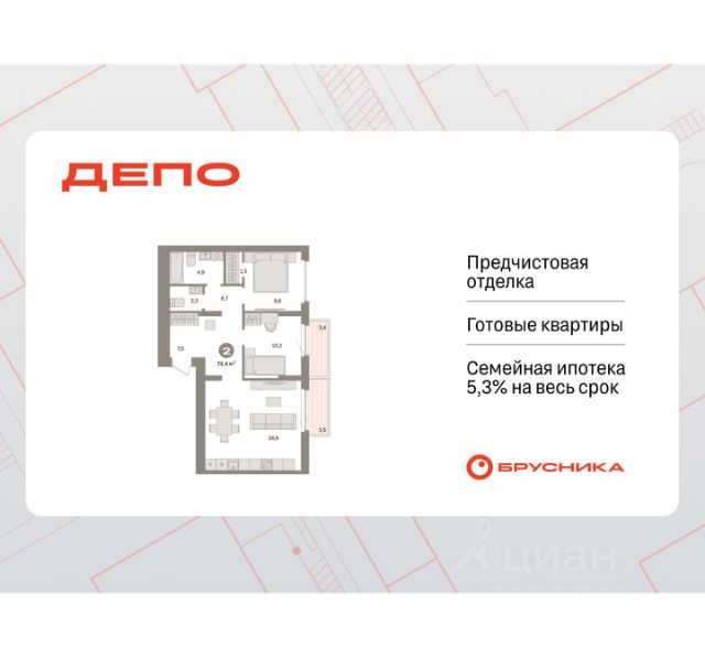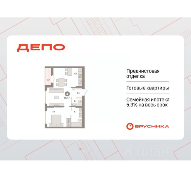 Квартира с кухней-гостиной и одной спальней в квартале "Депо". Особенности планировки: предчистовая отделка, балкон. квартиры в нашей базе: ДЕП07-Ж5.9.2. Квартал "Депо" расположен в активно развивающейся части Сортировки, на месте, где раньше был завод "Электротранс". Преимущества Сортировки — развитая инфраструктура. В пешей доступности — супермаркеты, остановки городского транспорта, поликлиники, детские сады, школы, гимназии, торговые центры, автоцентры, рынок с большим и доступным по стоимости выбором товаров, парк РЖД и парк с аттракционами Таганская Слобода. Квартал "Депо" расположен в границах улиц Пехотинцев — Таватуйская — Сортировочная — Новая (проектируется). Благоустройство квартала основано на трёх принципах. Первый — особое внимание к воде. Архитекторы Брусники создадут внутри застройки систему дождевых садов, которые будут фильтровать сток (в том числе с крыш зданий) и снижать нагрузку на ливневую канализацию . Второй принцип — разнообразие. Мы высадим на улицах ивы, липы, яблони разных сортов, спиреи, лапчатку и дерен, а во дворах — березы, липы, черёмухи, пузыреплодник, кизильник и манчжурский орех, который в Екатеринбурге почти не представлен. Третий принцип — зонирование. Центральный бульвар мы насытим площадками для игр детей и спокойного отдыха взрослых, на площади перед детским садом расположим окруженные деревьями плэйхабы, летние веранды кафе, открытое пространство с запоминающимся артом. #2Sc7uC