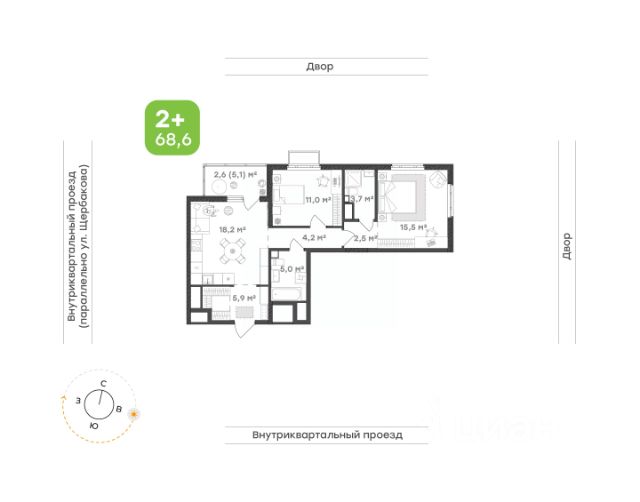Квартира для тех, кто хочет окунуться в мир современного уюта и функциональности Кухня-гостиная пространство, где свет и свобода создают атмосферу для кулинарных экспериментов, душевных встреч и уютных вечеров Родительская спальня становится личным укромным уголком, где предусмотрено место под шкаф для идеальной организации пространства Детская — светлая и радостная, с продуманным местом для хранения, где каждая деталь способствует комфортному росту и развитию Два санузла — один с ванной и местом под стиральную машину, и второй, компактный, но максимально функциональный, для комфорта всей семьи Просторная прихожая с местом под шкаф-купе позволяет хранить вещи аккуратно и организованно