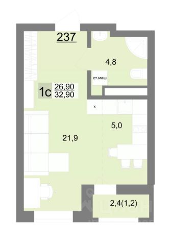 • ✅ Минимальная площадь: 27 м²