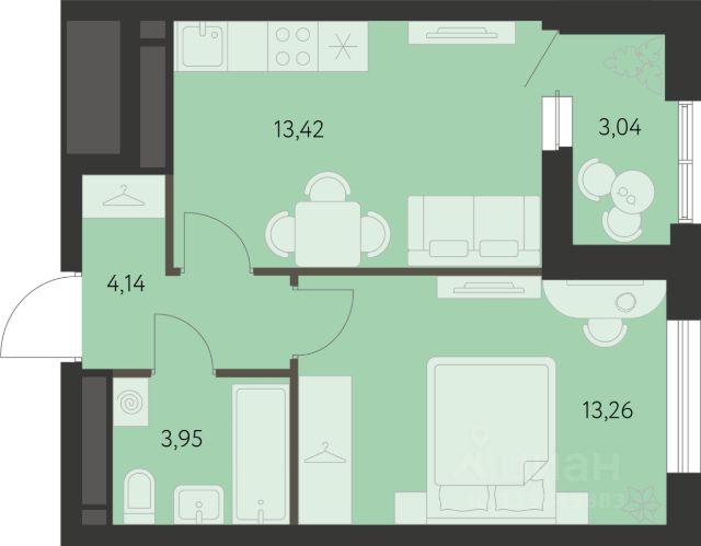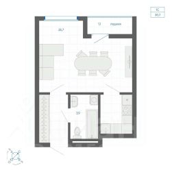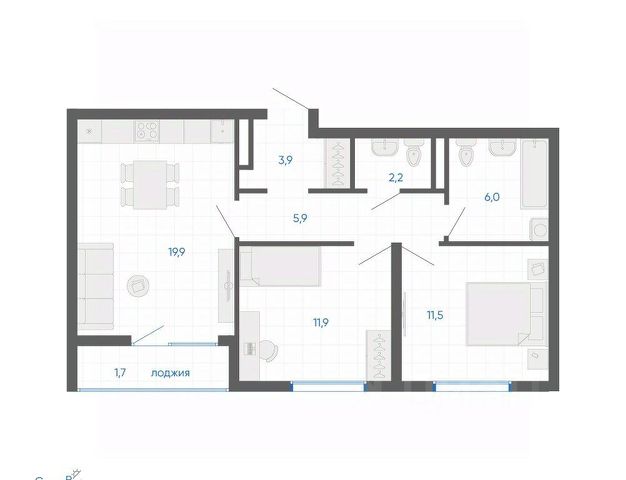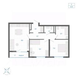 • ✅ Минимальная площадь: 19,3 м²