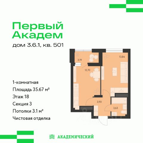 ЖК First жилой комплекс комфорт-класса от ведущего регионального застройщика группа компаний "ИКАР". Расположен в самом центре Академического района на пересечении улиц Академика Ландау и Вавилова. Удобное расположение транспортных развязок позволит быстро добираться до любой точки города. В двух минутах от комплекса расположено трамвайное кольцо и автобусная остановка. В 10 минутах езды от ЖК строится дорога, соединяющаяся с ЕКАДом, открытие которой запланировано на 2025 год к моменту получения ключей от квартир. Развитая инфраструктура района облегчит повседневные заботы. Большая инновационная поликлиника для взрослых, детский сад во дворе и школы в 5 минутах от дома. Преображенский парк для неспешных прогулок и активных выходных. Четыре секции разной этажности ЖК First образуют закрытую дворовую территорию, обеспечивая комфорт и безопасность. Ландшафтное озеленение создаст атмосферу уюта, а живые изгороди отделят детскую зону от зоны отдыха с кроссбукингом. Благодаря переменной высотности от 10 до 32 этажей во дворе всегда много солнечного света. В проекте предусмотрены детские игровые комплексы по возрастам, места для отдыха всей семьей и занятий спортом. Сквозные подъезды без ступеней создают простой и комфортный доступ в ваш новый дом. Удобно возвращаться с прогулки с детским самокатом или из путешествия с чемоданом. Из подъезда легко выйти и на улицу и во двор. Грязезащита на входе в подъезд и лапомойка для ваших питомцев поможет поддержать чистоту в любую погоду. На первом этаже расположены колясочные и зона ожидания с вендингом. Одно из главных отличий проекта это большие квартиры, в которых есть достаточно места для каждого члена семьи. В жилом комплексе "First" есть 3-комнатные квартиры площадью от 96,9 м², 4-комнатные от 112,8 м² до 140 м², есть планировочные решения с террасами, квартиры с мастер-спальнями и видовыми квартирами на парк, лес и закаты. Квартиры будут передавать с качественной чистовой отделкой, в которую входят влагостойкие обои под покраску на стенах, ламинат 32 класса, межкомнатные двери, обустроенная ванная комната, пол из керамогранита в санузле и необходимая сантехника. Для автомобилей выделены зоны наземной гостевой парковки и подземный паркинг с доступом на лифте в доме.