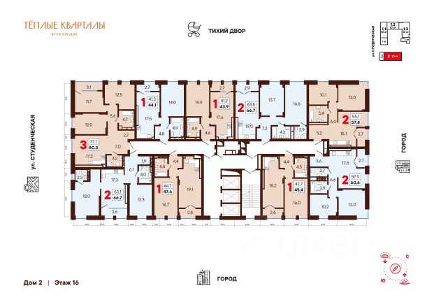 Секция 1 — башня в 31 этаж. В ней 209 1- и 2-комнатных квартир и 21 уникальная планировка — как в классическом исполнении, так и с просторными кухнями-гостиными до 22 м квадратных. Мы сдадим дом в 4 квартале 2026 года и выдадим ключи не позднее 30 апреля 2027 года.