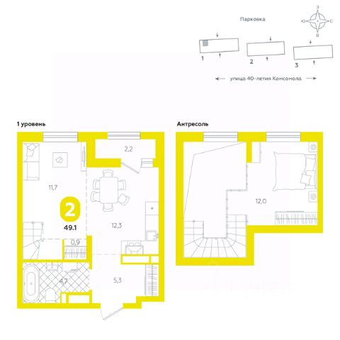 Квартира со вторым светом предоставляет уникальные возможности для реализации оригинальных дизайнерских идей, добавляя пространству ощущение высоты и открытости. Высокие потолки создают впечатляющий объем, а второй уровень позволяет обустроить дополнительное пространство для отдыха или работы. Это идеальный выбор для тех, кто хочет максимально использовать ресурсы своего жилья, добавляя ему индивидуальности и стиля. Квартира располагается в ЖК "Комсомольский" — жилом комплексе комфорт-класса. Здесь вы будете наслаждаться беззаботной жизнью, ведь ваш дом — воплощение практичности, безопасности и надежности. Для удобства предусмотрены колясочные на первых этажах домов, где можно оставить велосипеды и коляски в тепле. За безопасность отвечают система электронных ключей и видеонаблюдение. Еще здесь собственная котельная, поэтому в доме всегда будут горячая вода и оплата счетов только за фактически потребленное тепло. ПРЕИМУЩЕСТВА ЖК На этаже 11 квартир Красивые и функциональные парадные с мягкой и стильной зоной для отдыха, книгообменником, встроенными почтовыми ящиками и нишами для сумок Колясочные с доступом по ключу IP-домофоны Тихие лифты с плавным ходом О ПРОЕКТЕ ЖК "Комсомольский" строится в спокойном Кировском районе Екатеринбурга в границах улиц Сыромолотова — Рассветная — 40-лет Комсомола. Комплекс состоит из трех домов переменной этажности, которые выделяются динамичными линиями, выразительными фасадами и стильными лоджиями. ЛОКАЦИЯ Всё, что необходимо для повседневной жизни, находится недалеко от дома: школы, детские сады, продуктовые магазины, фитнес-клубы. Дорога до центра города на машине займет всего 10 минут — достаточно повернуть с улицы 40-летия Комсомола на улицу Владимира Высоцкого. Рядом с этим перекрестком начинается "Тропа здоровья" — большой терренкур вдоль "Каменных палаток". 10 мин до центра 3-4 минуты до школы No 82, гимназии No 176 4-5 минут до детских садов No 208, No 583, 266 20 мин до Свердловского областного медицинского колледжа и Центральной городской больницы No 7 В рамках стратегического развития района на первых этажах домов появятся коммерческие помещения, в которых откроются магазины и кафе. Следует учесть, что к 2030 году в Кировском районе планируется формирование регионального рекреационно-оздоровительного кластера, строительство ветки метро, расширение и модернизация старых промышленных зон социальной и бизнес-инфраструктуры, что приведет к созданию комфортной среды для жизни. Кроме того, в стратегию входит развитие Шарташского лесного парка как центра регионального и международного туризма. СПОСОБЫ ПОКУПКИ Ипотека: подберем выгодные условия в нескольких банках, чтобы вы могли выбрать лучшее Материнской капитал: можно использовать в качестве первоначального взноса Рассрочка: платите частями без % Сертификаты: позволяют оплатить часть стоим