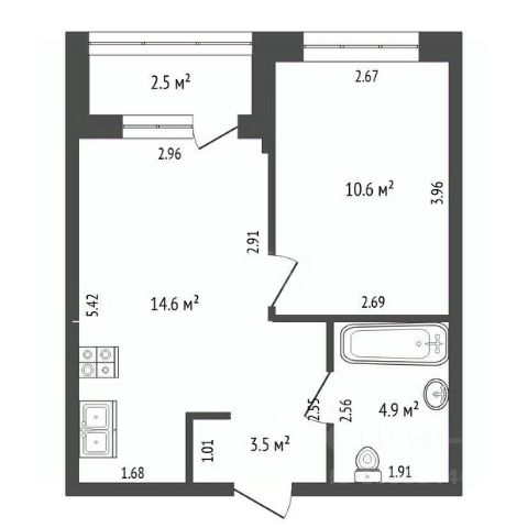 • ✅ Минимальная площадь: 35,8 м²