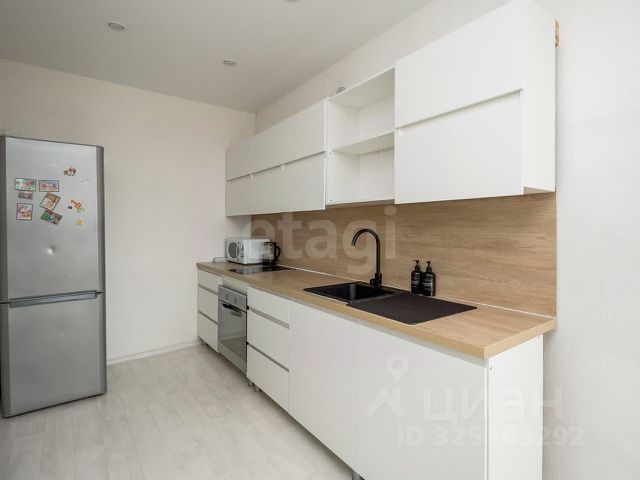 Полностью укомплектованная кухня с фасадами МДФ, с встроенной техникой (холодильник, электрическая варочная панель, посудомоечная машина, вытяжка, духовой шкаф, свч).
