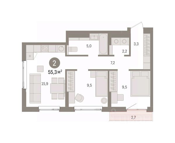 Однокомнатная квартира с предчистовой отделкой в ЖК "Квартал Траектория" на 5 этаже. Общая площадь: 35.4 кв.м., жилая: 9.4 кв.м., площадь просторной кухни-столовой: 16.2 кв.м. Все окна выходят на одну сторону. В квартире один балкон, один совмещенный санузел. Высота потолков 2.82 м. Дом монолитный, многоподъездный, переменной этажности, от 7 до 25 этажей. Квартира находится в 7-й секции высотой 7 этажей в корпусе 1-1. На этаже 8 квартир. В подъезде 1 грузовой лифт. Начало строительства - 4 квартал 2025 года. Окончание строительства - 4 квартал 2027 года. Оформление сделки по договору долевого участия. Квартира с кухней-гостиной и одной спальней в квартале "Траектория". Особенности планировки: балкон, вид во двор, предчистовая отделка. квартиры в нашей базе: МНВ01-Ж7.5.8. Квартал "Траектория" строится в границах улиц Билимбаевской, Расточной, Монтажников и Маневровой Раньше здесь находился оборонный завод 5-ЦАРЗ, основанный в 1945 году. После войны он ремонтировал военную и грузовую технику — от "Виллисов" и "Студебекеров" до советских ЗИС-5 и ГАЗ-67. Сортировка — район с развитой инфраструктурой, обжитыми жилыми кварталами разных эпох и большим количеством парков. До центра Екатеринбурга — 20 минут на машине. Туда же можно отправиться на автобусе: ближайшая остановка общественного транспорта — в 4 минутах от "Траектории". Рядом с "Траекторией" расположены магазины, торговый центр, детские сады, школы, поликлиники и полезные сервисы, а также другой проект Брусники — квартал "Депо". Если хочется развлечений, можно отправиться в ТРЦ "Карнавал" и парк с аттракционами "Таганская слобода" — дорога туда займёт не более 10 минут на машине. Квартал "Траектория" — первый этап комплексного развития территории, которую раньше занимали производственные здания. На месте бывших цехов Брусника создаст дружелюбную среду и комфортное пешеходное пространство для всего района. Для озеленения квартала мы подобрали больше 60 видов растений: ольху, липу, клён, иву, грушу, вишню, сирень, барбарис, гортензию, смородину, ирис, декоративные травы. Они цветут в разное время года и постоянно меняют настроение двора. В "Траектории" мы предусмотрели несколько общественных пространств, открытых для всех горожан: встречающий сквер, лесопарк у храма и событийный сквер между домами. Когда захочется тишины и уединения, можно устроить прогулку во внутренних дворах: в них нет машин и посторонних, зато много зелени, света и мест для отдыха. Каждый двор в квартале "Траектория" — продолжение квартиры, только под открытым небом. Здесь можно прогуляться босиком по траве, устроить утреннюю йогу, почитать книгу в гамаке или отправить детей поиграть, не переживая за их безопасность. Мы закроем дворы от машин, чтобы создать безопасную среду для отдыха. Применим натуральные материалы в отделке малых архитектурных форм — дерево, камень, металл без лишней обработки. Внутри каждого двора — детские площадки, перголы с тенистыми зонами, мягкие газоны и места для общения с Квартира в доме эконом класса.