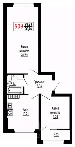 * Однокомнатные квартиры - от 44,0 кв.м до 52,36 кв.м