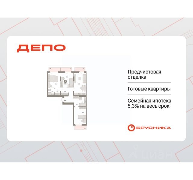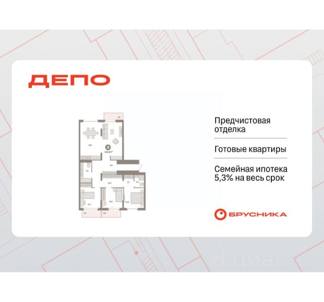 Квартира с кухней-гостиной и тремя спальнями в квартале "Депо". Особенности планировки: окна на две стороны, второй санузел, гардеробная, окна в пол, рабочий кабинет, вид во двор, панорамное остекление, предчистовая отделка, мастер-спальня, терраса, постирочная, балкон. квартиры в нашей базе: ДЕП07-Ж3.2.1. Квартал "Депо" расположен в активно развивающейся части Сортировки, на месте, где раньше был завод "Электротранс". Преимущества Сортировки — развитая инфраструктура. В пешей доступности — супермаркеты, остановки городского транспорта, поликлиники, детские сады, школы, гимназии, торговые центры, автоцентры, рынок с большим и доступным по стоимости выбором товаров, парк РЖД и парк с аттракционами Таганская Слобода. Квартал "Депо" расположен в границах улиц Пехотинцев — Таватуйская — Сортировочная — Новая (проектируется). Благоустройство квартала основано на трёх принципах. Первый — особое внимание к воде. Архитекторы Брусники создадут внутри застройки систему дождевых садов, которые будут фильтровать сток (в том числе с крыш зданий) и снижать нагрузку на ливневую канализацию . Второй принцип — разнообразие. Мы высадим на улицах ивы, липы, яблони разных сортов, спиреи, лапчатку и дерен, а во дворах — березы, липы, черёмухи, пузыреплодник, кизильник и манчжурский орех, который в Екатеринбурге почти не представлен. Третий принцип — зонирование. Центральный бульвар мы насытим площадками для игр детей и спокойного отдыха взрослых, на площади перед детским садом расположим окруженные деревьями плэйхабы, летние веранды кафе, открытое пространство с запоминающимся артом. #ZScT7c