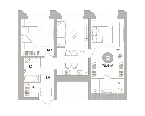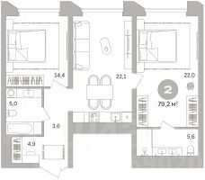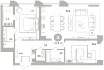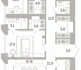 Квартира с кухней-гостиной и тремя спальнями в проекте Гоголя 21. Особенности планировки: свободная планировка.