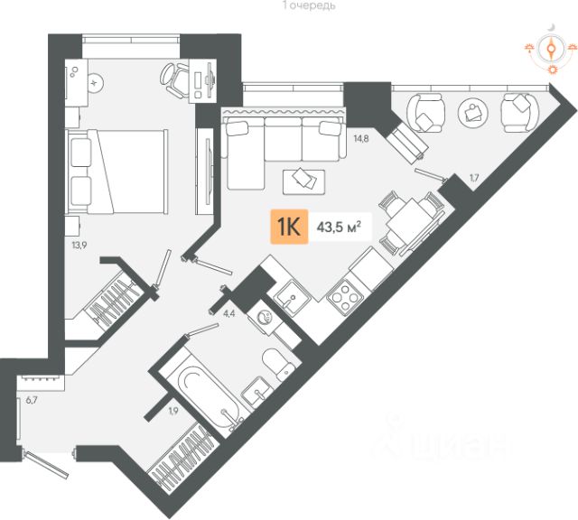 Продаётся 1-комнатная квартира в строящемся доме (3 очередь Секции 1-2), срок сдачи: III-кв. 2026, общей площадью 28.23 кв.м., на 6 этаже. Новый жилой комплекс "Микрорайон Zori" от застройщика "СЗ Экологика" расположен по адресу: Свердловская область, Берёзовский городской округ.