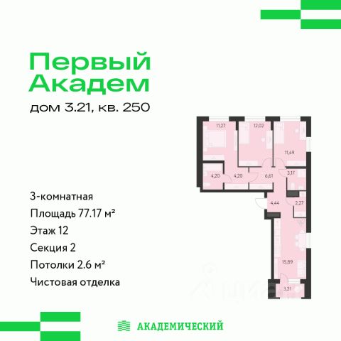 Продается 2-комнатная квартира площадью 43.66 кв.м. от девелопера "Академический" в жилом квартале "Первый Академ". Срок сдачи дома в 2028 году. Выгоды и скидка напрямую от застройщика. Дом расположен на въезде в район, отличается удобной транспортной развязкой. Рядом новая трамвайная линия и остановка общественного транспорта. Пять домов разной этажности. Эко-тренды во дворах. Холлы и фасады в стиле ар-деко. На территории квартала предусмотрено множество удобств для жильцов, включая видеонаблюдение 24/7, двор без машин, кладовые и подземный паркинг с выходом из лифта, коммерция на первых этажах.