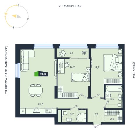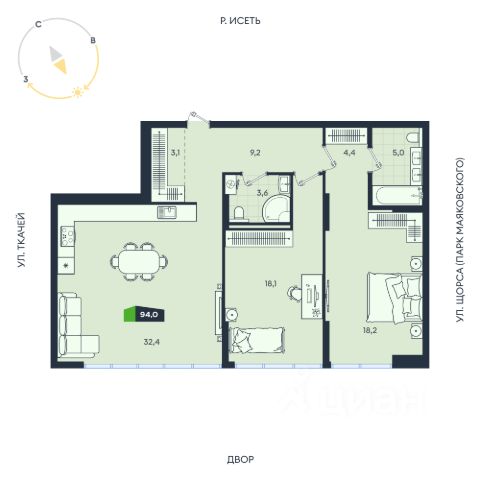 Спешите оформить бронирование, пока действует скидка! Период акции ограничен! Стоимость квартиры указана со скидкой, ваша экономия составит 550,000 RUB. Звоните, наши менеджеры вам все расскажут! Квартира с кухней-гостиной и тремя спальнями в Южных кварталах. Особенности планировки: мастер-спальня, предчистовая отделка. квартиры в нашей базе: ЮКВ08-Ж1.2.5. Жилой район "Южные кварталы" расположен в границах улиц Московская, Шаумяна и Фурманова, недалеко от автовокзала. До центра города — 10 минут на автомобиле. До станции метро "Чкаловская" — 15 минут пешком. Рядом находится парк, школа олимпийского резерва, несколько гимназий, лицей, детские сады и городская больница. "Южные кварталы" — проект комплексного редевелопмента территории, разработанный архитекторами Брусники совместно с голландскими бюро. Он разделен на несколько частей, каждая из которых имеет свой характер. Вдоль оживленной Московской появятся более высокие и крупные дома. Профиль спокойной и очень зелёной Шаумяна сформируют кварталы среднеи этажности. В глубине района мы расположим урбан-виллы, чуть дальше — башни-доминанты. Последние будут играть роль визуальных акцентов и впоследствии станут символами этого места. Ближе к Фурманова мы организуем образовательный кластер. Его составят два детских сада на 300 и 325 мест и школа, рассчитанная на 1500 учеников. Школа будет иметь спортивную зону, которая станет доступна и жителям района. Свяжет территорию сеть общественных пространств. Её центральным звеном станет зелёный променад, проходящий сквозь весь район и соединяющий его с парком 50-летия ВЛКСМ. #26VC9V Квартира в новостройке в районе Ленинский в городе Екатеринбург.