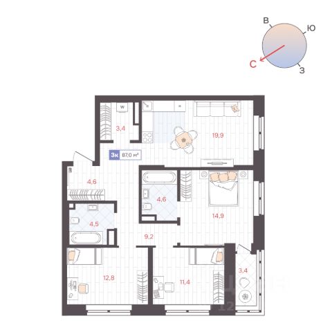 Дом "на Ясной" находится на пересечении улиц Ясная и Шаумяна в тихом районе с хорошей транспортной доступностью и сформированной инфраструктурой. Отсюда удобно выезжать как в сторону центра, так и к Объездной дороге. Расположение сочетает близость к центру города и природное уединение ближайший парк имени 50-летия ВЛКСМ находится через дорогу. Входная группа дома продумана так, чтобы сразу создавать ощущение спокойного, надежного пространства. Порогов и ступеней нет, поэтому легко пройти с коляской, велосипедом или чемоданом. Внутри встречает мягкий свет, лаконичные оттенки и натуральные материалы. В мягкой зоне с диванами и пуфами можно расслабиться, пока ждете такси или встречаете гостя. Сквозные входы из холла во двор и на улицы позволяют разделить потоки разгрузить вещи можно с внешней стороны, отправиться на прогулку с ребенком с внутренней. В каждой секции три лифта два пассажирских и один грузовой с увеличенной кабиной. В нем достаточно места для велосипеда или коляски. Во время ремонта или переезда удобно перевозить крупногабаритную мебель, например, диван или гардину. Для спортивных и семейных жителей в лобби есть специальные помещения, где можно оставить коляску, самокат или велосипед. Для владельцев домашних животных предусмотрена лапомойка, чтобы легко и быстро избавиться от грязи после прогулки. Гигантский двор площадью 2,8 Га это место, где хочется задержаться. Его размер сопоставим с четырьмя футбольными полями. Для любимых командных игр не нужно искать площадку в аренду, потому что два оборудованных корта есть в собственном дворе. Жители дома могут объединяться и проводить спортивные турниры по футболу, волейболу или баскетболу. Для тех, кто предпочитает другие виды тренировок, организовано воркаут-пространство на все группы мышц. Малыши могут играть в одной из самых больших песочниц в городе. Дети постарше каждый день придумывать новые развлечения на многочисленных игровых комплексах. Взрослым понравится отдыхать в тени навеса или просто прогуливаться по территории, где каждый уголок благоустроен для комфортного времяпровождения. В доме "на Ясной" предусмотрен многоуровневый подземный паркинг на 778 машиномест. Если говорить о коэффициенте обеспеченности, то он высокий: 0,6. Это значит, что парковочных мест хватит для всех желающих. Доступ в паркинг осуществляется по ключ-карте, которой нет у посторонних. Автомобили находятся под круглосуточным видеонаблюдением и охраной. Из квартиры к машине можно попасть на скоростном лифте из каждой секции. Рядом расположены кладовые. Их можно использовать для хранения сезонных вещей: горнолыжной экипировки, санок, велосипедов. Такое решение позволит жителям дома освободить балконы, лоджии и коридоры квартир от габаритных предметов. В доме "на Ясной" все квартиры сочетают функциональность и простор для фантазии. Можно выбрать классическую или европланировку площадью до 92 кв. м. Кухни-гостиные объединяют семью за обедом, а изолированные спальни гарантируют приватность. В коридора Продам квартиру в новостройке в районе Ленинский в городе Екатеринбург.