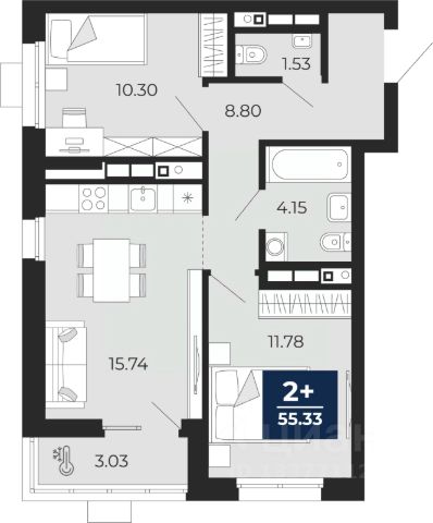 Торопитесь оформить бронирование по этой цене, срок предложения ограничен! Стоимость квартиры указана со скидкой, ваша экономия составит 746,025 руб. По всем вопросам звоните в офис продаж, наши менеджеры вам все расскажут. Просторная 2-комн. квартира с предчистовой отделкой в ЖК "Соната Парк" на 10 этаже. Общая площадь: 55.33 кв.м., жилая: 22.08 кв.м., площадь просторной кухни-столовой: 15.74 кв.м. Угловая квартира, очень светлая, естественная вентиляция при открытии окон. В квартире одна лоджия, один совмещенный и один раздельный санузел. Высота потолков 2.72 м. Дом монолитный, двухподъездный, переменной этажности, от 23 до 30 этажей. Квартира находится в 1-й секции высотой 30 этажей в корпусе 1. На этаже 10 квартир. В подъезде 2 пассажирских и 2 грузовых лифта. Окончание строительства - 4 квартал 2028 года. Оформление сделки по договору долевого участия. ЖК "Соната Парк" расположен в новом городском кластере "Аллея Романтиков" на Юго-Западе Екатеринбурга. Это район улиц Волгоградская Советских женщин Шаумяна Амудсена. Аллея объединяет разные кварталы застройщиков этой территории в единое целое. Чистые линии, интеллектуальная элегантность фасадов, игра света и тени это партитура, написанная архитектором. Благоустройство жилого комплекса это синтез искусства и природы. Поющие музыкальные инсталляции и поэтический променад. Оркестр растений: сирень, гортензии и яблони, чья цветущая палитра сменяется в течение года. Жизнь с готовой инфраструктурой Развитая транспортная доступность и социальная среда: уже сегодня рядом с домом детские сады, школы, парковые зоны, супермаркеты и рестораны в шаговой доступности. Технологии безопасности Для спокойствия жителей создана интеллектуальная система безопасности. Круглосуточный визуальный контроль обеспечивают профессиональная служба охраны, постоянно присутствующая на территории, и ситуационный центр. Система видеонаблюдения охватывает каждый уголок комплекса, исключая "слепые" зоны. Чёткое зонирование и навигация дополняют картину полного порядка. Дизайнерские подъезды Стилистика подъездов продолжает концепцию "Соната Парка", вдохновлённого музыкальной симфонией: сдержанный, но при этом впечатляющий дизайн соседствует с удобством и функциональностью. В подъезде вас встречает музыка, создавая особую атмосферу с первых секунд. Светлые и стильные входные группы с панорамным остеклением наполняют пространство светом, добавляя ему современной эстетики и ощущения безопасности. Аллея Романтиков Проект органично вписан в масштабный пешеходный кластер "Аллея Романтиков" — уникальное общегородское пространство, которое уже сегодня называют будущей альтернативой главным прогулочным улицам города. Это многофункциональный бульвар протяжённостью 1 километр, где всё создано для вдохновения и отдыха. Это "зелёное сердце" территории, которое объединит кварталы разных застройщиков в единую гармоничную среду. Здесь будут назначать свидания, гулять с семьёй, встречаться с друзьями и пр