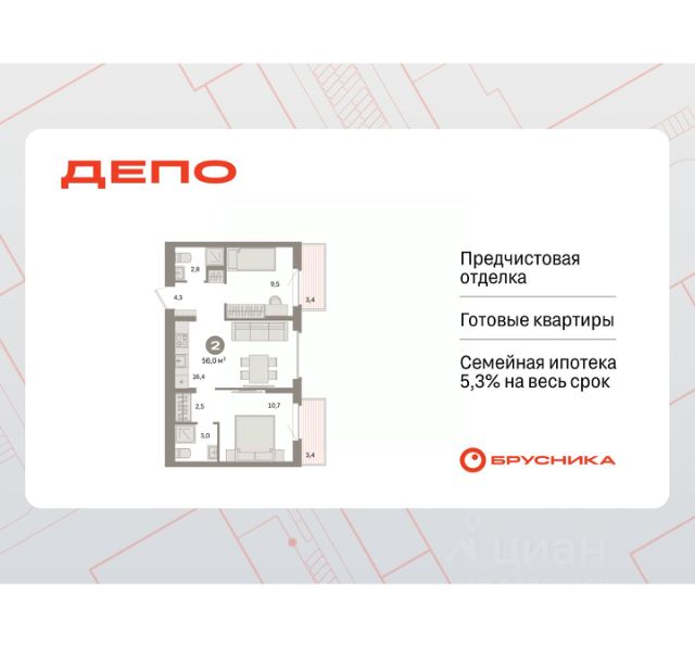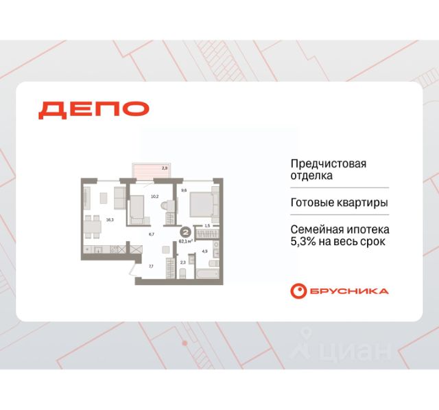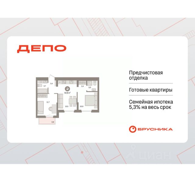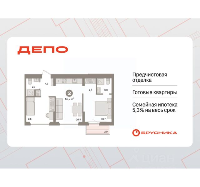 Квартира с кухней-гостиной и двумя спальнями в квартале "Депо". Особенности планировки: второй санузел, гардеробная, вид во двор, разнесённые спальни, предчистовая отделка, балкон. квартиры в нашей базе: ДЕП04-Ж8.6.1. Квартал "Депо" расположен в активно развивающейся части Сортировки, на месте, где раньше был завод "Электротранс". Преимущества Сортировки — развитая инфраструктура. В пешей доступности — супермаркеты, остановки городского транспорта, поликлиники, детские сады, школы, гимназии, торговые центры, автоцентры, рынок с большим и доступным по стоимости выбором товаров, парк РЖД и парк с аттракционами Таганская Слобода. Квартал "Депо" расположен в границах улиц Пехотинцев — Таватуйская — Сортировочная — Новая (проектируется). Благоустройство квартала основано на трёх принципах. Первый — особое внимание к воде. Архитекторы Брусники создадут внутри застройки систему дождевых садов, которые будут фильтровать сток (в том числе с крыш зданий) и снижать нагрузку на ливневую канализацию . Второй принцип — разнообразие. Мы высадим на улицах ивы, липы, яблони разных сортов, спиреи, лапчатку и дерен, а во дворах — березы, липы, черёмухи, пузыреплодник, кизильник и манчжурский орех, который в Екатеринбурге почти не представлен. Третий принцип — зонирование. Центральный бульвар мы насытим площадками для игр детей и спокойного отдыха взрослых, на площади перед детским садом расположим окруженные деревьями плэйхабы, летние веранды кафе, открытое пространство с запоминающимся артом. #zSc8TA