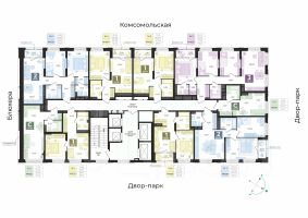 Время жить счастливо Современник — знаковый парк-квартал в интеллигентном районе Втузгородок, откуда недалеко до центра, а вблизи ведущие вузы и театры. Квартал состоит из 8 очередей строительства. Шесть очередей уже сданы и заселены; седьмая строится. В продаже квартиры от застройщика: 1 этап строящейся 7-й очереди. Объединяет квартал большой внутренний парк площадью в гектар — богатый прогулочными маршрутами, тенистыми деревьями, пространствами для отдыха, спорта и детских игр. С внешней стороны, у домов седьмой очереди, появится гостевой центр. Проект создавали в KCAP Architects & Planners, архитектурном бюро из Нидерландов, чьи работы украшают ландшафты Гамбурга, Роттердама, Антверпена и других городов Европы. Современные технологии, продуманное пространство и трендовый облик зданий создают размеренную и счастливую атмосферу для жизни здесь. Достойное окружение До проспекта Ленина на машине вы доберётесь за 10 минут, а с другой стороны, неподалёку — Шарташский лесопарк с озером Шарташ, которому около миллиона лет. Здесь для вас пляжи, лодочные станции, тропы для бега, спортивные площадки и кафе. В квартале уже работают супермаркеты, пекарни, салон красоты и не только. Ближние школы, гимназии и университеты помогут расправить крылья новым поколениям, а детские сады станут заботливой средой в начале пути. Кстати, на территории квартала спроектирован муниципальный детский сад на 200 мест. Выходите во двор Гуляйте по зелёным аллеям или устройтесь с книгой в гамаке. Займитесь воркаутом, футболом, баскетболом или пинг-понгом. Проводите семейные праздники под крытым амфитеатром или отправьте детей весело играть на насыщенный плейхаб. Мы всё предусмотрели. На закрытой территории без машин и посторонних спокойно и безопасно. Видеонаблюдение и освещение добавляют ещё больше уверенности. Впечатляющая доминанта у домов 7 очереди — новый гостевой центр: камерное пространство под навесом-перголой с озеленением и скамейками, чтобы встречать друзей или просто коротать вечер. Ваша зона комфорта Стильное лобби Современника мы выполним в эстетике contemporary: минимализм, сочетание дерева со штукатуркой и тёмным металлом, зеркала, витражи. Обстановка из мягкой мебели, растений и книг. Двери из холла выходят на обе стороны. Внутри — специальная комната для колясок и самокатов. На минус первом этаже подземный паркинг с 201 машино-местом, куда легко попасть на лифте прямо с вашего этажа. Здесь же можно приобрести одну из 67 кладовых, чтобы хранить сезонный инвентарь и крупную технику. СТРОЙТЭК возводит 7 очередь в 3 этапа. Дом с привилегиями Первый этап — секция 7.1, отдельная башня в 25 этажей. Здесь 246 квартир в 19 уникальных планировках от студий до 3-комнатных, в классических и евро-вариантах. Просторные кухни-гостиные, гардеробные и окна на 2 стороны — лишь часть их плюсов. В Современнике улучшенный стандарт отделки "Комфорт +". Помимо привычных комфортных сантехники и электрики, в него входят оконные стёкла Energy Light, которые помогают сохранять комфортну
