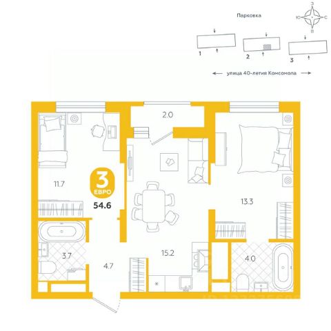 Квартира располагается в ЖК "Комсомольский" — жилом комплексе комфорт-класса. Здесь вы будете наслаждаться беззаботной жизнью, ведь ваш дом — воплощение практичности, безопасности и надежности. Для удобства предусмотрены колясочные на первых этажах домов, где можно оставить велосипеды и коляски в тепле. За безопасность отвечают система электронных ключей и видеонаблюдение. Еще здесь собственная котельная, поэтому в доме всегда будут горячая вода и оплата счетов только за фактически потребленное тепло.