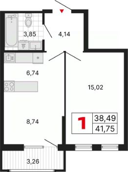 Просторная 1-комн. квартира с предчистовой отделкой в ЖК "ДНК. Дом на Куйбышева" на 3 этаже. Общая площадь: 41.75 кв.м., жилая: 15.02 кв.м., площадь просторной кухни-столовой: 15.48 кв.м. Все окна выходят на одну сторону. В квартире один балкон, один совмещенный санузел. Высота потолков 2.7 м.