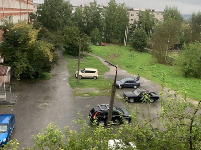 Территория двора благоустроена: оборудованная детская площадка, парковка.