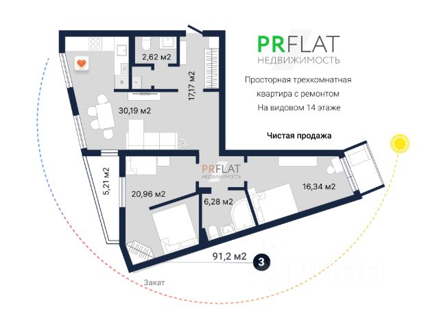 - отличная планировка, с размещением комнат на разные стороны, все комнаты изолированы и имеют правильную форму