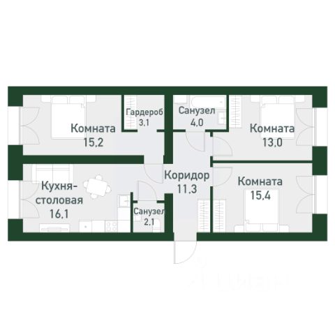 Ванная Комната - 9,3 кв.м. Коридор - 17,7 кв.м