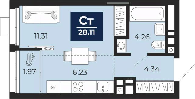 Продается 1-комн. квартира-студия с предчистовой отделкой в ЖК "Соната Парк" на 2 этаже. Общая площадь: 27.13 кв.м., площадь гостиной 17.54 кв.м., из которых 6.23 кв.м. выделено под кухонную зону. Все окна выходят на одну сторону. В квартире одна лоджия, один совмещенный санузел. Высота потолков 2.72 м. Дом монолитный, трехподъездный, переменной этажности, от 10 до 24 этажей. Квартира находится в 3-й секции высотой 16 этажей в корпусе 2. На этаже 10 квартир. В подъезде 2 пассажирских и 1 грузовой лифт. Окончание строительства - 4 квартал 2028 года. Оформление сделки по договору долевого участия. ЖК "Соната Парк" расположен в новом городском кластере "Аллея Романтиков" на Юго-Западе Екатеринбурга. Это район улиц Волгоградская Советских женщин Шаумяна Амудсена. Аллея объединяет разные кварталы застройщиков этой территории в единое целое. Чистые линии, интеллектуальная элегантность фасадов, игра света и тени это партитура, написанная архитектором. Благоустройство жилого комплекса это синтез искусства и природы. Поющие музыкальные инсталляции и поэтический променад. Оркестр растений: сирень, гортензии и яблони, чья цветущая палитра сменяется в течение года. Жизнь с готовой инфраструктурой Развитая транспортная доступность и социальная среда: уже сегодня рядом с домом детские сады, школы, парковые зоны, супермаркеты и рестораны в шаговой доступности. Технологии безопасности Для спокойствия жителей создана интеллектуальная система безопасности. Круглосуточный визуальный контроль обеспечивают профессиональная служба охраны, постоянно присутствующая на территории, и ситуационный центр. Система видеонаблюдения охватывает каждый уголок комплекса, исключая "слепые" зоны. Чёткое зонирование и навигация дополняют картину полного порядка. Дизайнерские подъезды Стилистика подъездов продолжает концепцию "Соната Парка", вдохновлённого музыкальной симфонией: сдержанный, но при этом впечатляющий дизайн соседствует с удобством и функциональностью. В подъезде вас встречает музыка, создавая особую атмосферу с первых секунд. Светлые и стильные входные группы с панорамным остеклением наполняют пространство светом, добавляя ему современной эстетики и ощущения безопасности. Аллея Романтиков Проект органично вписан в масштабный пешеходный кластер "Аллея Романтиков" — уникальное общегородское пространство, которое уже сегодня называют будущей альтернативой главным прогулочным улицам города. Это многофункциональный бульвар протяжённостью 1 километр, где всё создано для вдохновения и отдыха. Это "зелёное сердце" территории, которое объединит кварталы разных застройщиков в единую гармоничную среду. Здесь будут назначать свидания, гулять с семьёй, встречаться с друзьями и просто наслаждаться моментом. Линейка ремонтов Ремонт с капсульной меблировкой — когда всё готово к жизни. Мы соединили качественный ремонт и продуманную меблировку в одном флаконе. Словно "с иголочки", новая квартира готова и обставлена с чувством стиля и вкуса. Зд Квартира-студия в Екатеринбурге.