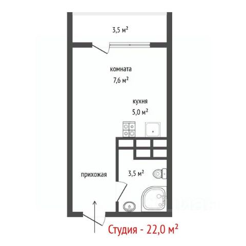 с учетом лоджии вся квартира 20,2 кв.м ( 1 м2 ширина лоджии, длина во всю квартиру!)