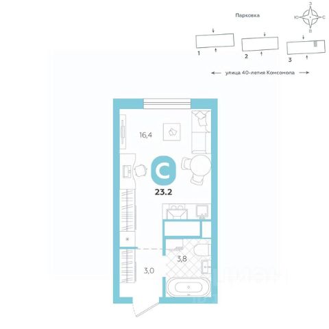 Эргономичная квартира-студия с лоджией и перспективой роста в цене — отличный выбор для тех, кто делает первые шаги к самостоятельной жизни. Общая площадь квартиры 21,7 кв.м., и ее умная планировка позволяет создать атмосферу, полностью отражающую ваши стиль и предпочтения. Квартира располагается в ЖК "Комсомольский" — жилом комплексе комфорт-класса. Здесь вы будете наслаждаться беззаботной жизнью, ведь ваш дом — воплощение практичности, безопасности и надежности. Для удобства предусмотрены колясочные на первых этажах домов, где можно оставить велосипеды и коляски в тепле. За безопасность отвечают система электронных ключей и видеонаблюдение. Еще здесь собственная котельная, поэтому в доме всегда будут горячая вода и оплата счетов только за фактически потребленное тепло. ПРЕИМУЩЕСТВА ЖК Красивые и функциональные парадные с мягкой и стильной зоной для отдыха, книгообменником, встроенными почтовыми ящиками и нишами для сумок Колясочные с доступом по ключу IP-домофоны Тихие лифты с плавным ходом О ПРОЕКТЕ ЖК "Комсомольский" строится в спокойном Кировском районе Екатеринбурга в границах улиц Сыромолотова — Рассветная — 40-лет Комсомола. Комплекс состоит из трех домов переменной этажности, которые выделяются динамичными линиями, выразительными фасадами и стильными лоджиями. ЛОКАЦИЯ Всё, что необходимо для повседневной жизни, находится недалеко от дома: школы, детские сады, продуктовые магазины, фитнес-клубы. Дорога до центра города на машине займет всего 10 минут — достаточно повернуть с улицы 40-летия Комсомола на улицу Владимира Высоцкого. Рядом с этим перекрестком начинается "Тропа здоровья" — большой терренкур вдоль "Каменных палаток". 10 мин до центра 3-4 минуты до школы No 82, гимназии No 176 4-5 минут до детских садов No 208, No 583, 266 20 мин до Свердловского областного медицинского колледжа и Центральной городской больницы No 7 В рамках стратегического развития района на первых этажах домов появятся коммерческие помещения, в которых откроются магазины и кафе. Следует учесть, что к 2030 году в Кировском районе планируется формирование регионального рекреационно-оздоровительного кластера, строительство ветки метро, расширение и модернизация старых промышленных зон социальной и бизнес-инфраструктуры, что приведет к созданию комфортной среды для жизни. Кроме того, в стратегию входит развитие Шарташского лесного парка как центра регионального и международного туризма. СПОСОБЫ ПОКУПКИ Ипотека: подберем выгодные условия в нескольких банках, чтобы вы могли выбрать лучшее Материнской капитал: можно использовать в качестве первоначального взноса Рассрочка: платите частями без % Сертификаты: позволяют оплатить часть стоимости квартиры О КОМПАНИИ "Паритет Девелопмент" — это современный и ответственный подход к реализации проектов в сфере жилищного строительства. Компания ф