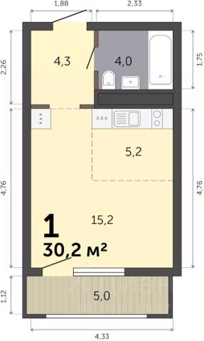 Квартира студия с теплой лоджией в ЖК Жилой дом 7Я, продается по переуступке. Расположена по адресу: г. Екатеринбург, ул. Александровска, дом 3А в Пионерском районе.