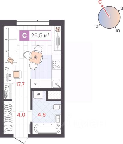 Ввод в эксплуатацию: вторая половина 2025 года Класс дома: комфорт. Отделка: чистовая. Вид из окон: на центр города и озеро Шарташ. Б.26 дом на высоте современный жилой комплекс в районе Втузгородок (пересечении улиц Блюхера и Мира). До центра города 20 минут ходьбы. В шаговой доступности находятся: ВУЗы (Уральский федеральный университет, Юридическая академия) Дендрологический парк. школы (Гимназии 35, 47, 108, Лицей 130) детские сады ( 421, 423, 332, 352) остановки общественного транспорта (ул. Мира, ул. Блюхера, ТК Современник). торговые центры (Апельсин, Современник, Галерея 11, Blissco молл) Современная архитектура. Долговечные фасады из навесных панелей и штукатурки, увеличенные окна и французские балконы формируют уникальный узнаваемый образ. Ночная подсветка выделяет дом среди застройки района и подчеркивает выразительность его силуэта. Двор без машин. Игровые площадки для детей разных возрастов, места отдыха и занятий спортом для взрослых не соседствуют с парковкой. Динопарк. Игровые зоны созданы в стиле таинственного мира динозавров. Парк во дворе. Многоуровневое озеленение c прогулочными дорожками, беседками и качелями. Три уровня безопасности. Контроль доступа по карте жителя, эффективная система видеонаблюдения, консьерж-сервис. Дизайнерские холлы. Парадный холл с остеклением в пол, зонами ожидания, гостевым санузлом и санузлом для мытья лап животным, а также колес велосипедов и колясок. Сервисная компания от застройщика. Обслуживанием дома будет заниматься профессиональная команда. Строительные и технические преимущества. Индивидуальный тепловой пункт: снижает затраты на отопление. Система очистки улучшит качество воды в доме. Пятикамерные окна задержат шумы и холод. Клапан вентиляции позволит проветрить комнату, не устраивая сквозняк. Горизонтальная разводка отопления: трубы спрятаны в полу. Счетчики с телеметрией. Отдельный счетчик на отопление у каждой квартиры. Отведение конденсата для кондиционеров. Высокий уровень шумоизоляции у стены квартир. Бесшумные, скоростные лифты. Продам квартиру-студию с кухней гостиной в Екатеринбурге.