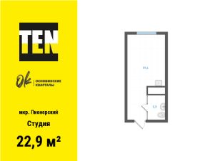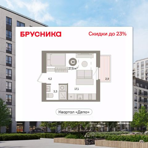 Однокомнатная студия от застройщика с предчистовой отделкой в ЖК "Квартал Траектория" на 5 этаже. Общая площадь: 28 кв.м. Высота потолков 2.82 м.