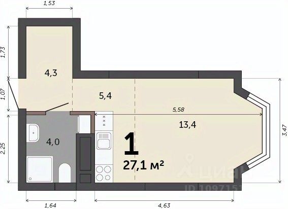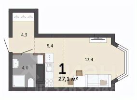 Продается 1-комн. студия с предчистовой отделкой в ЖК "Квартал Траектория" на 10 этаже. Общая площадь: 33.2 кв.м., площадь гостиной 22.6 кв.м., из которых 5 кв.м. выделено под кухонную зону. Все окна выходят на одну сторону. В квартире один балкон, один совмещенный санузел. Высота потолков 2.82 м.