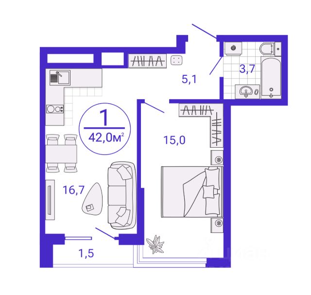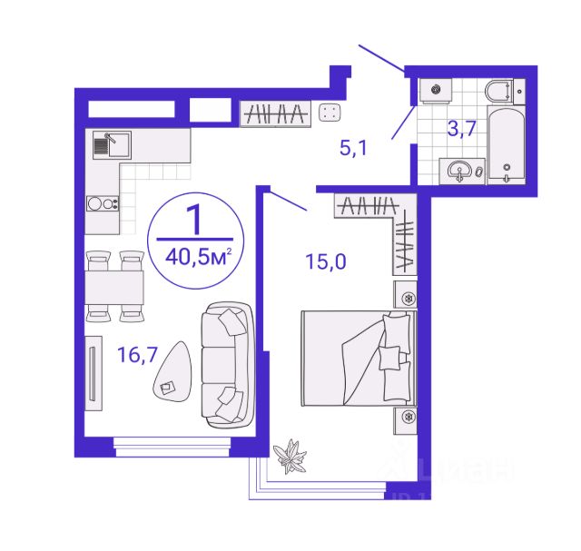 1-комн. квартира с отделкой в ЖК "ДНК. Дом на Куйбышева" на 1 этаже. Общая площадь: 47.62 кв.м., жилая: 10.35 кв.м., площадь кухни: 6.4 кв.м. Угловая квартира, окна oбecпeчивaют paвнoмepнoe ocвeщeниe в тeчeниe дня. В квартире один балкон, один совмещенный санузел. Высота потолков 2.7 м.