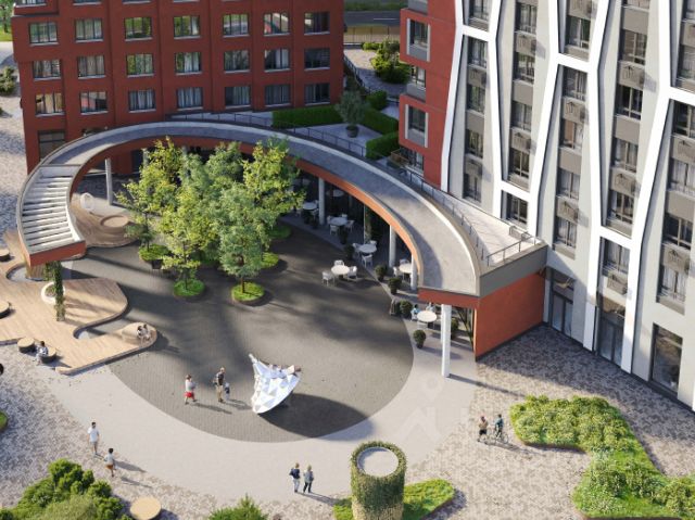 - дом кирпично-монолитный, переменной этажности (6-8-16), является частью крупной застройки из нескольких домов, объединенных общей концепцией и пешеходным бульваром, пересекающим всю территорию жилых ансамблей, запланированных к возведению застройщиком Брусникой;