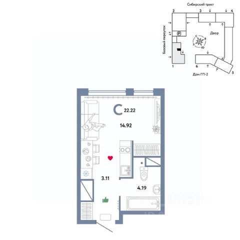 Объявление от застройщика Страна Девелопмент. Покупка квартиры защищена банком. Продается студия на 11 этаже от застройщика Страна Девелопмент. Площадь квартиры 22,22 кв. м. Стоимость указана без учета акций. ОСОБЕННОСТИ: - Система Умный дом в каждой квартире - Двор-сад с приватной территорией и собственным бульваром - Охрана, видеонаблюдение 24/7 и доступ к камерам в мобильном приложении - Форматы квартир от 21 до 86 м2, европланировки с французскими балконами, угловым остеклением, лоджией, мастер-спальней, гардеробной. На верхних этажах расположены видовые квартиры ОТДЕЛКА: Мы сдаем квартиры с предчистовой отделкой. Всё уже готово к ремонту: выведена разводка электричества и отопления, выполнена стяжка пола, стены выровнены. Вам останется выбрать материалы и приступить к ремонту. При покупке квартиры в ЖК "Сибирский сад" можно включить стоимость ремонта в ипотеку. Застройщик предлагает три варианта цветовых решений: натуральный, светлый или тёмный. СПОСОБЫ ПОКУПКИ: Сотрудники Страны Девелопмент будут сопровождать вас на каждом этапе сделки, помогут получить одобрение по ипотеке или снизить ежемесячный платеж. - Ипотека - Материнский капитал - 100% оплата наличными Цены на квартиры указаны без учета скидок. На консультации менеджер подскажет, какие акции действуют, и как получить одобрение по ипотеке с низкой ставкой.